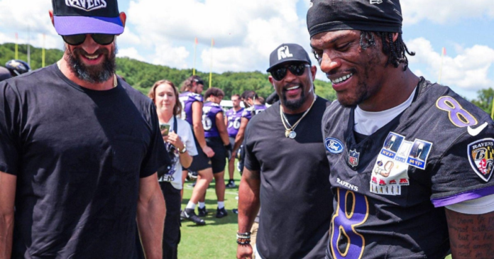 Baltimore sports legends Ray Lewis and Michael Phelps visited Ravens training camp practice on Tuesday in Owings Mills, Maryland, to offer words of wisdom to the players.