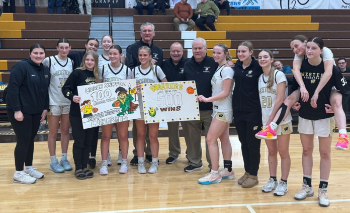 With a 54-31 victory over Flushing, the Warriors reached the 500-win mark in the program’s 52-year history. The win was also the 100th as a varsity girls basketball coach for Dan Snover, who spent four seasons at Bay City Central and is now in his fifth year at the helm at Western.