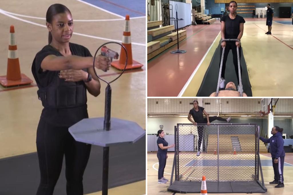 To qualify for the NYPD’s six-month training at the police academy in Flushing, recruits must complete six punishing tasks in under 4 minutes and 28 seconds, all while wearing a 14-pound weighted vest.