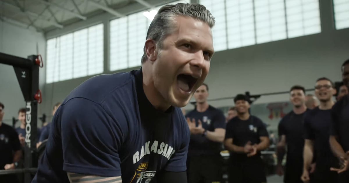 Defense Secretary Pete Hegseth can’t stop pumping iron as U.S. warships head towards the Middle East.