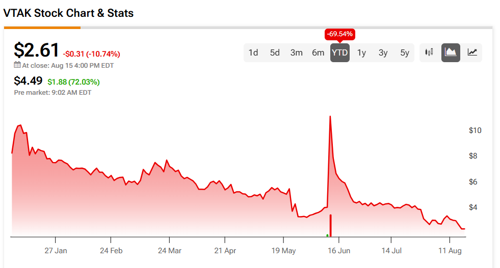 Catheter Precision (VTAK) stock saw major gains on Monday after the medical device company’s LockeT was registered and approved in the UK. This was the final step needed to begin sales of the suture retention device in the UK after it received a CE M… [1806 chars]