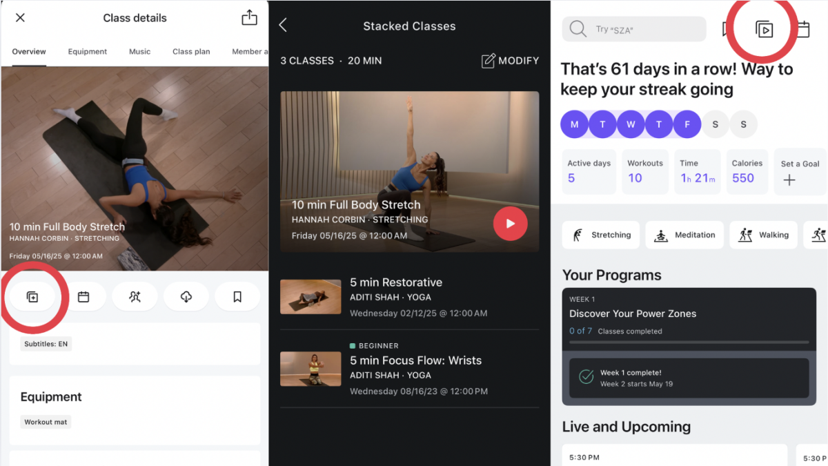 How to stack, modify, and access stacked classes in the Peloton app. Credit: Lindsey Ellefson